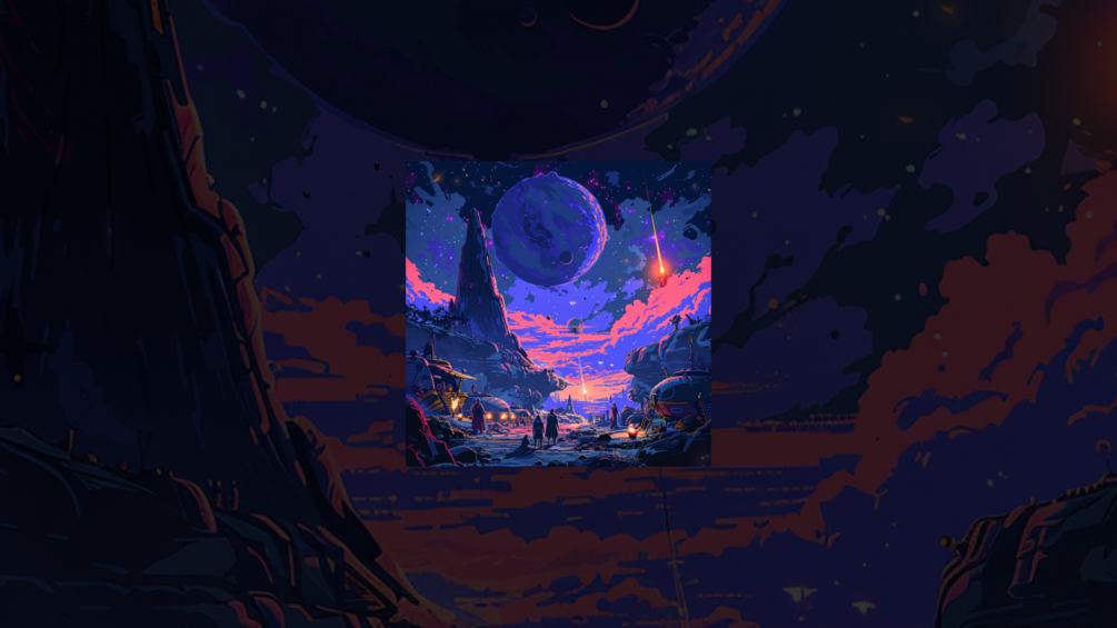 "Starry Frontier" is a dynamic 4K album cover that captures the limitless potential of space travel and the vibrant life of distant worlds. It's an invitation to embark on a musical journey filled with adventure and discovery, suited for tracks that push the boundaries of imagination.